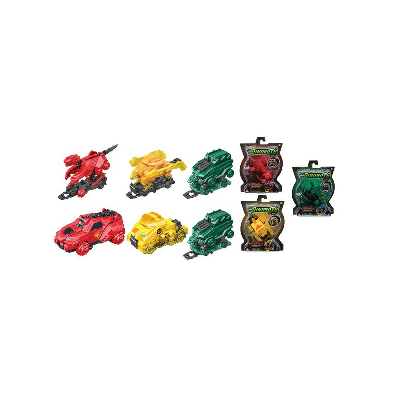 Herbeleef de avonturen van de superhelden uit je favoriete tekenfilm!Ontdek de populairste dinosaurussen uit de serie als 2-in-1 transformeerbare voertuigen!Laat je voertuig rijden en transformeer het in een robot met een rotatie van 720 graden (2 volledige cirkels)!Met een snelle handeling kan je het weer terugzetten in auto-modus.Op avontuur!Verzamel ze allemaal!