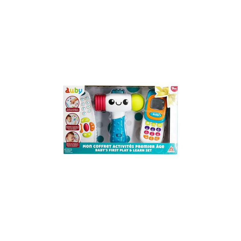 Leren terwijl je speelt!Deze activiteitenbox voor jonge kinderen is perfect om de ontwikkeling van baby’s vanaf 9 maanden te ondersteunen. Hij bevat 3 eenvoudige en zintuiglijke spelletjes die nieuwsgierigheid, fijne motoriek en ontwikkeling stimuleren terwijl je kind plezier maakt.Set met 3 activiteiten voor jonge kinderen:- Een eerste afstandsbediening om cijfers en kleuren te ontdekken- Een eerste hamer om fijne motoriek, behendigheid en coördinatie te ontwikkelen- Een eerste telefoon om de namen van letters en cijfers in het Engels te lerenLicht- en geluidsfuncties.De ergonomische vormen zorgen voor een gemakkelijke grip en gebruik door het kind.Werkt op batterijen.