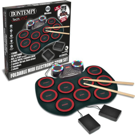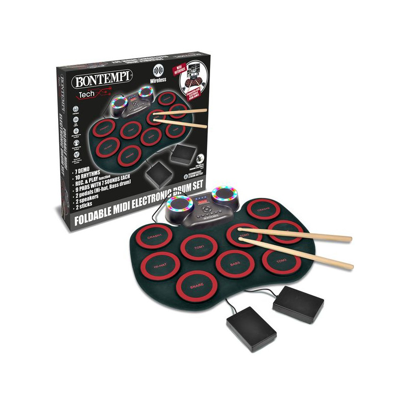 BONTEMPI-DRAADLOZE OPROLBARE ELEKTRONISCHE DRUMSET MET DRUMSTOKKEN