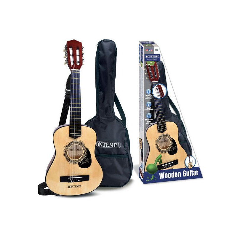 BONTEMPI-WOODEN GUITAR 75 CM W/SHOULDER STRAP AND CARRY-BAG