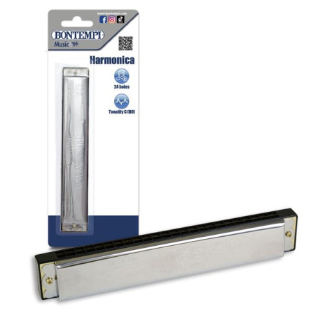 BONTEMPI-METALEN MONDHARMONICA 24 TONEN MET KOFFER