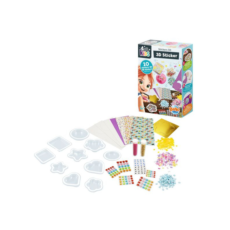 Maak 10 3D-stickers met een kawaii-thema!Kies een doorzichtige hoes, plaats de kleine versieringen erin en sluit de hoes met een dubbelzijdige kaart om een sticker te maken die je overal kunt plakken!Bevat: 10 doorzichtige hoesjes, 2 buisjes met microparels, talrijke kawaii-versieringen, zelfklevende oogjes en strass-steentjes, en bedrukte of blanco kaarten om zelf te personaliseren.Te gebruiken alleen of als aanvulling op de stickerfabriek (Ref. FK011).Geïllustreerde handleiding in kleur.Vanaf 6 jaar.