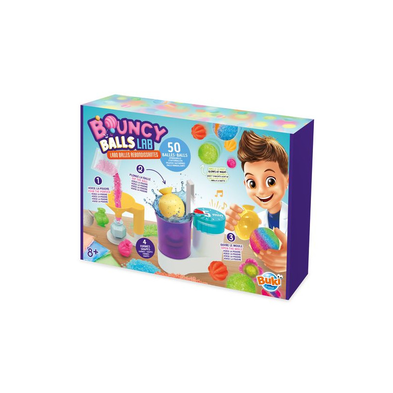 Maak 50 stuiterballen in verschillende vormen en kleuren!Ontdek 3 stations: de trechter om te gieten zonder te morsen, de mal om in water onder te dompelen die dankzij de timer automatisch weer omhoog komt, en het handige droogrek om het overtollige water op te vangen.Er worden 8 mallen in verschillende vormen en 7 kleuren poeder meegeleverd.De handleiding is geïllustreerd in kleur, zodat je alle stappen gemakkelijk kunt uitvoeren.Vanaf 8 jaar.Vertaald met DeepL.com (gratis versie)