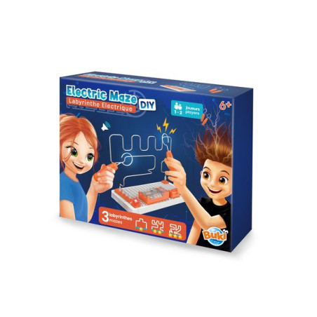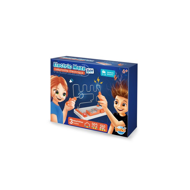 Zet de elektronische onderdelen in elkaar om een elektrisch doolhof te maken dat je moet doorlopen zonder het metaal aan te raken!Er zijn 3 parcours met 3 moeilijkheidsgraden: makkelijk, gemiddeld of moeilijk.Test je behendigheid en snelheid: leid het stokje langs het parcours en doe er alles aan om contact te vermijden.De console gaat aan en de zoemer gaat af als je het metaal aanraakt... Kun jij de uitdaging aan?Sluit het tweede meegeleverde stokje aan en speel met een vriend. Twee modi voor 2 spelers: competitief en coöperatief.Geïllustreerde handleiding in kleur.Werkt op 2 LR06-AA-batterijen (niet meegeleverd).Vanaf 8 jaar.Vertaald met DeepL.com (gratis versie)