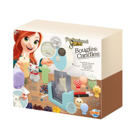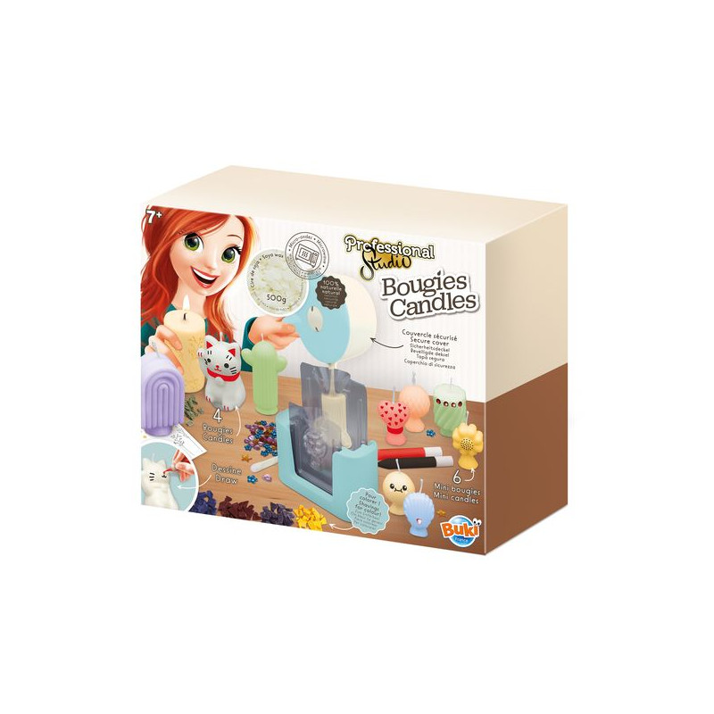 Maak 10 natuurlijke kaarsen en personaliseer ze met transfers of door er rechtstreeks op te tekenen.Smelt de sojawas gemakkelijk en veilig dankzij de pan met veilig deksel, geschikt voor de magnetron. Plaats maximaal twee mallen op de basis, giet de was erin en laat afkoelen!De set bevat alles wat je nodig hebt: 500 g sojawas, 10 mallen om 4 grote kaarsen en 6 minikaarsen te maken, 5 kleuren in schilfers, 2 vellen transfers, 2 waspotloden, evenals lonten en houders.Geïllustreerde handleiding in kleur.Vanaf 7 jaar.