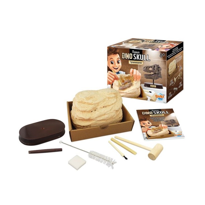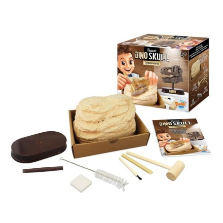 Graaf een dinosaurusschedel op en gebruik hierbij het voorziene gereedschap: hamer, graveerbeitel en borstel. Inclusief: een platform om te graven zonder je omgeving vies te maken. De dinosaurusschedel kan op een kleine sokkel worden uitgestald, net zoals in het museum. Twee modellen: Tyrannosaurus en TriceratopsGeïllustreerde handleiding in kleurVanaf 8 jaar.