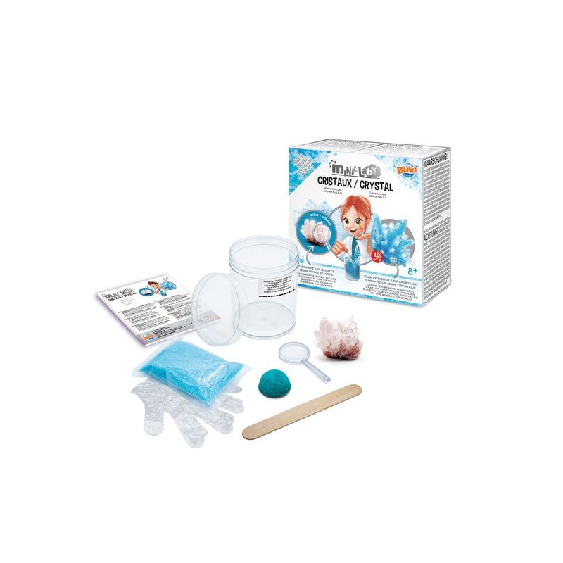 Een pakket om makkelijk een groot, gekleurd kristal te verkrijgen. Met het kristalpoeder, de kweekbeker en een geïllustreerde handleiding in kleur.Vanaf 8 jaar.