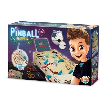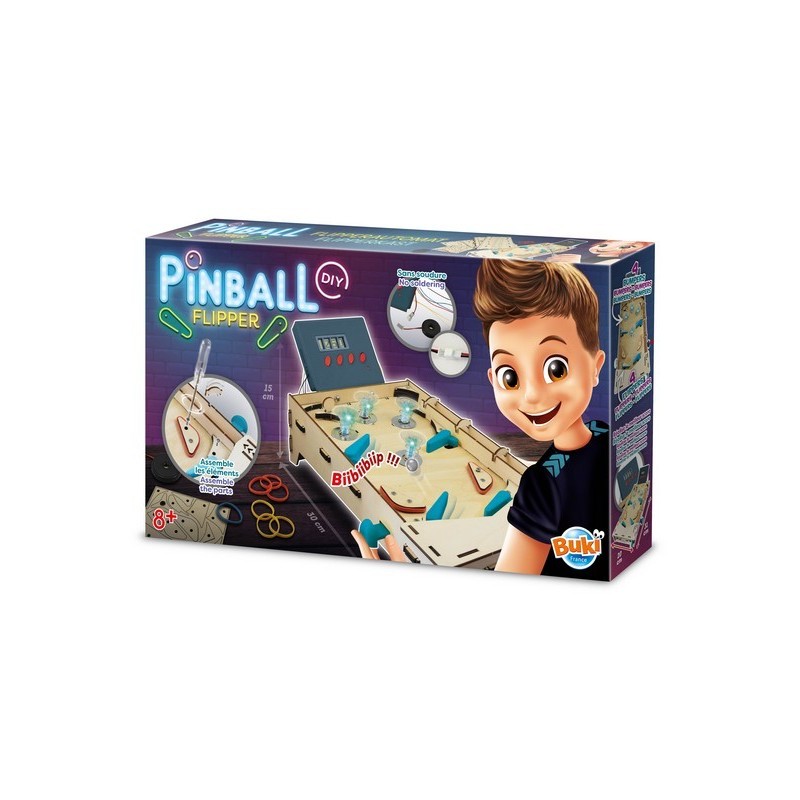 Monteer je flipperkast met de elementen uit het pakket. Gebruik hiervoor de schroevendraaier die ook in het pakket zit. Sluit de componenten aan op de verbindingsstukken zonder laswerk: bumpers, lichtdiodes en het scorebord. Personaliseer je flipperkast met de stickers. Telkens wanneer het balletje de bumpers raakt, maakt het elektronisch bord geluid. Op het bord worden ook de scores van de spelers bijgehouden. Geïllustreerde handleiding in kleur.Er zijn 3 LR06-AA-batterijen nodig. Die zitten niet in het pakket.Vanaf 8 jaar.