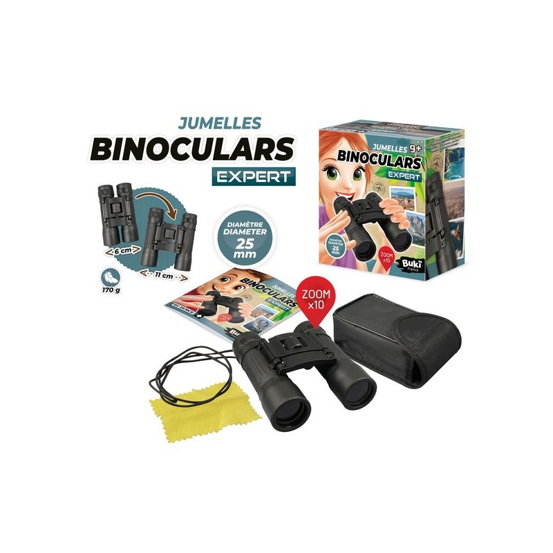 Een verrekijker van 10 x 25 mm om 10 keer groter te zien! Scherpstelwiel voor scherpte en antisliplaag voor betere grip. Getinte lenzen voor natuurlijkere kleuren. De verrekijker is compact en licht. Inclusief draagtas en doekje. Geïllustreerde kleurenbijlage met experimenten en observaties. Vanaf 9 jaar.