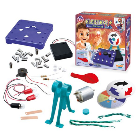 Een doos die je helpt de basisbeginselen van elektriciteit te begrijpen! 25 verschillende circuits om te leren over serie- en parallelschakelingen, motoren, lichten en spelletjes. Bevat alle accessoires die je nodig hebt om de schakelingen te maken. Geïllustreerde instructies in kleur. Werkt op 4 LR06-batterijen (niet meegeleverd). Geschikt voor kinderen vanaf 8 jaar.