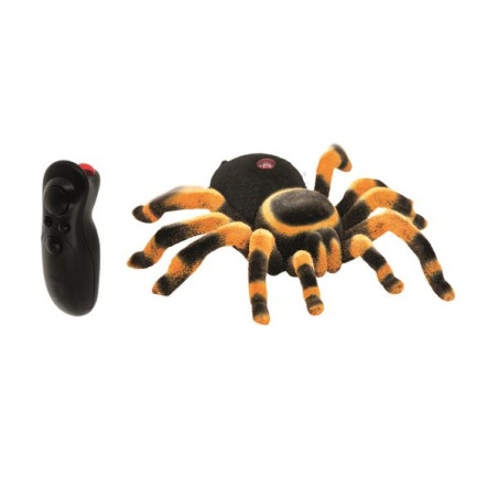 Een op afstand bestuurbare vogelspin om je familie en vrienden voor de gek te houden. Gebruik de IR-afstandsbediening om hem onopvallend op afstand te bedienen. Hij kan vooruit en achteruit bewegen. De poten bewegen realistisch. De vogelspin is een reproductie van de Brachypelma smithi, de beroemde Mexicaanse roodknievogelspin. Inclusief: een boekje om de gevaarlijkste spinnen te ontdekken.Grootte van de vogelspin: 16,5 x 15,5 cm.Vereist 4 batterijen LR03-AAA, niet inbegrepen.Vanaf 6 jaar.