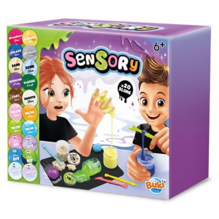 Ontdek 20 soorten slime: jumping, glow, neon, cotton, metallic, galaxy... Maak eenvoudig je eigen mengsels door water toe te voegen aan de voorgedoseerde bekers. Gebruik de gereedschappen om de slimes te boetseren, te kneden en te mengen. Inclusief: een siliconen mat om de tafel te beschermen en te spelen zonder te knoeien.