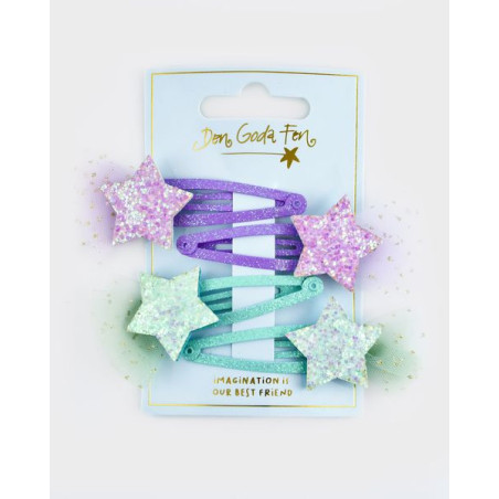 DEN GODA FEN-HAARCLIPS GLITTERSTER 4 STUKS 7 CM