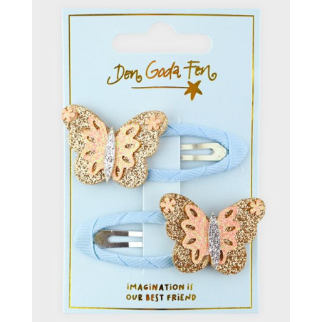 DEN GODA FEN-HAARCLIPS GOUDEN VLINDER SET VAN 2 STUKS 6 CM