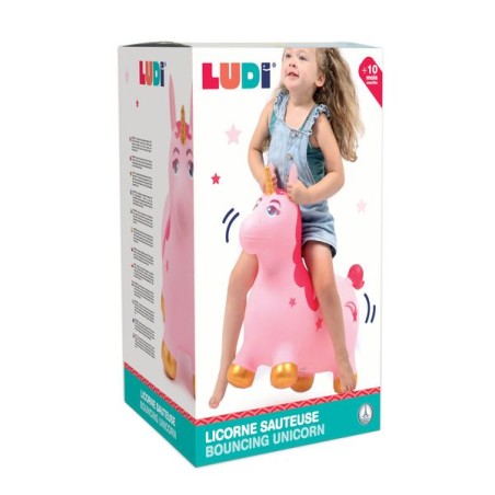 Een dynamische en leuke eenhoorn. Deze mooie eenhoorn in roze en goud kan worden gebruikt als een springbal met twee "oorhengsels". De dikke plastic textuur zorgt voor een goede stabiliteit en stevigheid om binnen of in de tuin mee te spele