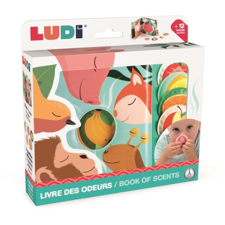 Een sensorisch en speels boek om fruit te ontdekkenGeef je kind een unieke leeservaring die de zintuigen en de fantasie prikkelt! Dit interactieve boek combineert ontdekken, leren en plezier door middel van kleurrijke illustraties en verrassende fruitgeuren.Lezen met al je zintuigenElke pagina nodigt je kind uit om de natuur te verkennen samen met grappige dieren die hun lievelingsfruit laten zien. De grote verrassing? Er komt een heerlijke geur uit het boek! Dit maakt het lezen extra meeslepend en boeiend. Het is een speelse manier om namen van fruit, kleuren en dieren te leren en tegelijkertijd de woordenschat te vergroten.Geur-associatiespel: spelenderwijs lerenHet boek wordt geleverd met vijf geparfumeerde schijfjes die stukjes fruit voorstellen: perzik, sinaasappel, aardbei, appel en druif.Ontdekken: Door met een vingertje over de sticker te wrijven, komt de geur vrij.Combineren: Het kind moet de geur herkennen en het schijfje met klittenband op de juiste plek bij het bijbehorende fruit plakken.Dit is een uitstekende oefening om het geurgeheugen te stimuleren en het leerproces te versterken door middel van actie.Ontworpen voor kleine handjesDankzij de dikke pagina's en de makkelijk los te maken schijfjes is dit boek perfect voor peuters om zelf vast te houden en te onderzoeken. Het bevordert de zintuiglijke ontwikkeling en begeleidt je kind bij het ontdekken van de wereld om hen heen.Kenmerken:Leeftijd: Geschikt vanaf 12 maanden.Afmetingen boek: 15 x 15 x 3,5 cm.Afmeting schijfjes: Ø 5 cm.Materiaal: PEVA (veilig en duurzaam).Onderhoud: Eenvoudig afneembaar met een vochtige doek.