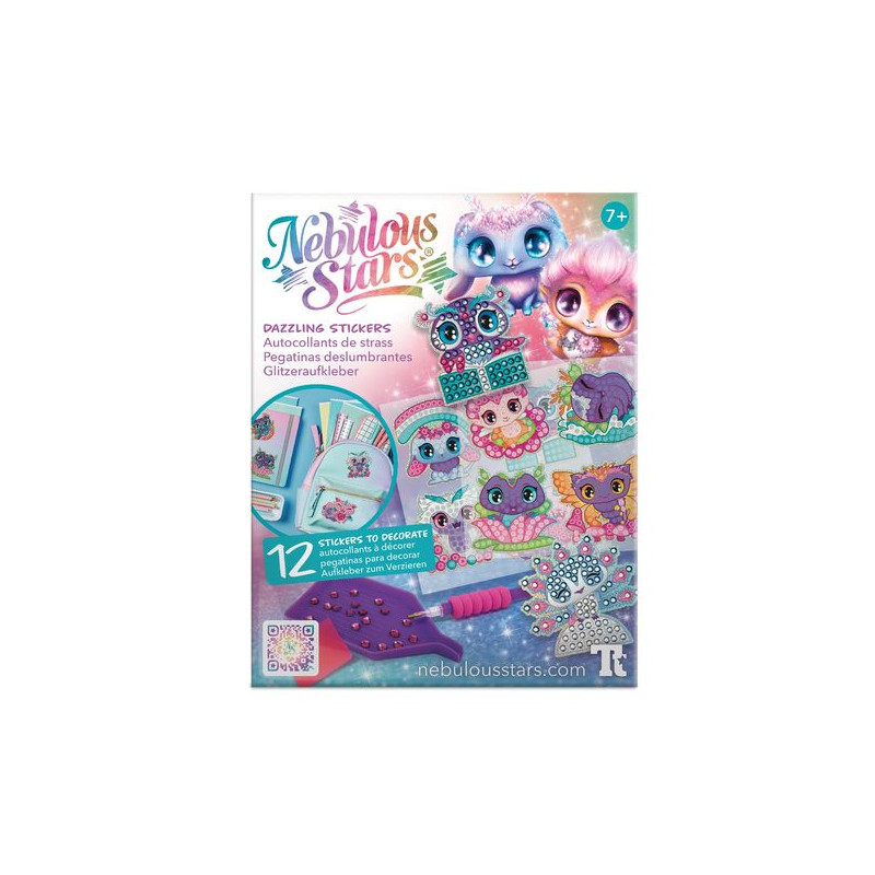 Maak 12 oogverblindende stickers! Gebruik een speciale applicator om glanzende edelstenen op zelfklevende sjablonen aan te brengen en je krijgt unieke stickers met textuur en glanzende Animoulous vrienden.