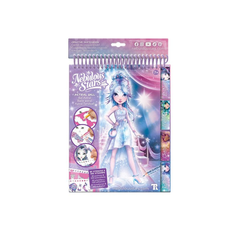 De sterren zijn uitgenodigd voor een bal! Help ze zich klaar te maken door prachtige jurken, accessoires en kapsels te maken met dit nieuwe mode schetsboek.