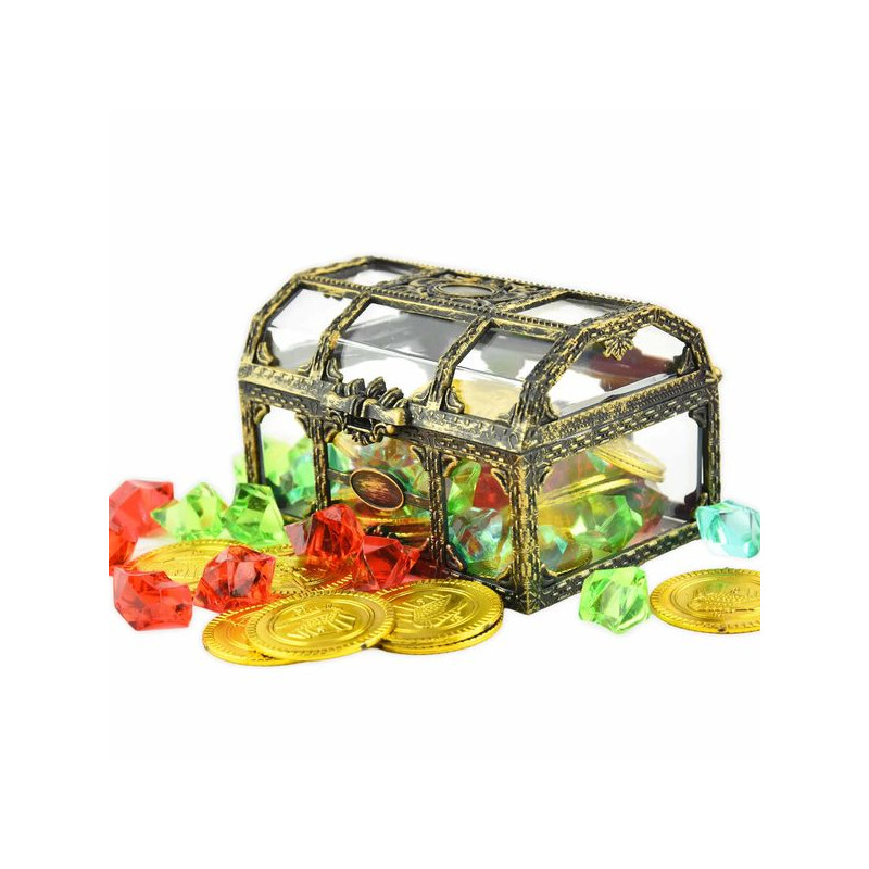 ROBETOY-10,5CM SCHATKIST MET DIAMANTEN EN GOUDEN MUNTEN