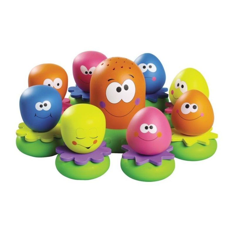 Mama Octopus en haar 8 kleintjes brengen badtijd tot leven! Mummy Octopus dient als basis en drijft op het water. Haar hoofd dient als schenktuit om het water "douche-stijl" te laten stromen en Baby aan het water te laten wennen. De 8 Baby Octopussen kunnen overal worden geplakt (tegels, badwand) dankzij de zuignappen of kunnen worden gebruikt als sproeikop om te spuiten en het water te laten spatten!Als iedereen zijn pleziertje heeft gehad, wordt elke baby weer op zijn plaats gezet aan mama's 8 tentakels. En om je weg te vinden, moet je gewoon het nummer van elke baby vergelijken met het nummer op elke tentakel! Baby leert cijfers en heeft plezier!De basis drijft op water.Vanaf 12 maanden.- Een badspeeltje met een drijvende basis. De Mummy Octopus dient als schenktuit voor het water. De 8 Baby Octopussen worden gebruikt als sproeiers en kunnen met hun zuignappen op de tegels of de badwand worden geplakt. 1 Baby Squirter = 1 nummer: het doel is om elke baby terug op zijn plaats te zetten dankzij de nummers die zijn aangegeven op de tentakels van de Mummy Octopus.- Helpt baby met zijn angst voor water- Inclusief: 1 Mummy Octopus en 8 Baby Squirters- Vanaf 12 maanden- Leerwaarden: Ontwikkelt logica. Het ontdekken van getallen, het ontwaken in kleuren