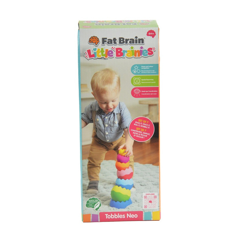 Kleine handjes worden nooit moe van het kantelen, balanceren, draaien, schommelen, kantelen en draaien van deze fascinerende eierpiramide, een variatie op het klassieke stapelpatroon. De bijzondere textuur prikkelt de tastzin, de onstabiele bollen nodigen uit tot experimenteren en de gebeeldhouwde rondingen inspireren tot creativiteit