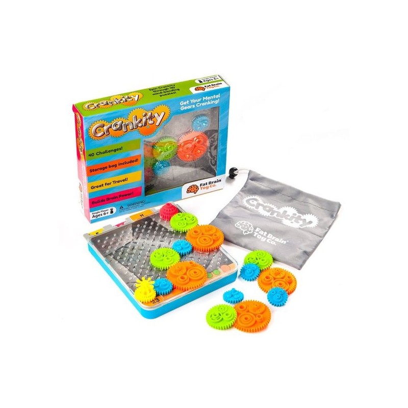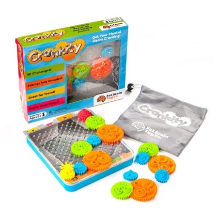 Laat je hersens werken!Het doel is eenvoudig: bouw een puzzeloplossing tussen het rode tandwiel en het gele wiel. Als de tanden van het tandwiel in elkaar passen, kun je het wiel draaien en het ding rond laten gaan!Begin met het kiezen van een puzzel naar keuze (er zijn vier moeilijkheidsgraden, zodat het hele gezin kan spelen!)Schuif de kaart onder het transparante raster en plaats vervolgens het rode tandwiel en het gele wiel zoals afgebeeld. Bij elke puzzel staan een aantal kleuren en maten tandwielen, en het aantal dat je nodig hebt (deze staan op de onderkant van de kaart gedrukt). Haal ze eruit (je MOET ze allemaal gebruiken!).Nu: los de puzzel op!Denk je dat je de puzzel hebt opgelost? Draai aan het gele wiel en kijk of je toestel draait! Als het rode tandwiel draait met alle tandwielen die je MOET gebruiken, heb je zojuist de puzzel opgelost!Zo niet, ga dan terug naar je ontwerpbord en zet je probleemoplossend vermogen weer in!
