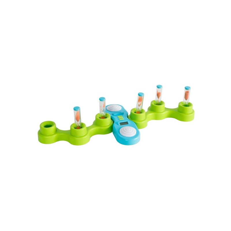 Flip snel om de klok uit te spelen!Elke zandtimer is gevuld met een andere hoeveelheid zand. Stel de klokken in op hoe lang je wilt dat het spel duurt en start het spel door op je tijdknop te drukken en alle zandtimers om te draaien.Met één hand moet je het zand laten stromen door de timers om te draaien en ze één voor één naar een lege plek te verplaatsen.Blijf geconcentreerd en beweeg snel... Zodra een tijd op is, mag je tegenstander op zijn knop drukken om jouw tijd te stoppen en die van hem te starten, voordat hij direct in de zand-klap-actie springt.Wie als eerste zijn tijd opgebruikt heeft, wint het spel!Test je concentratie en reflexen tegen het harde oordeel van de tijd met het intense, snelle spel InSANDity.