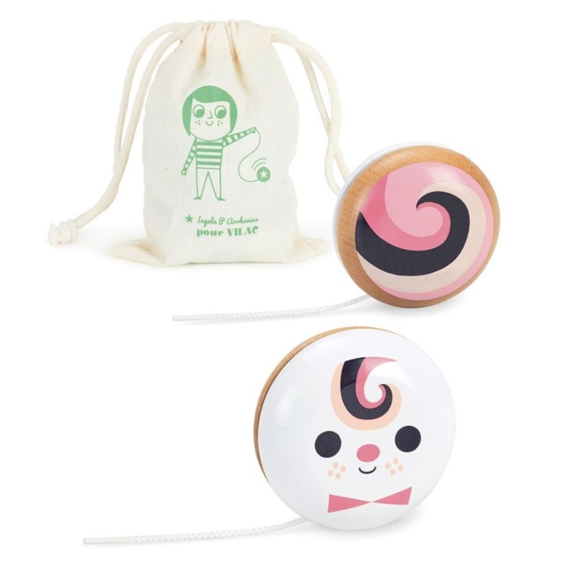 Op!Neer!Op'Neer!Een kleurrijke , massief jojo met een leuke motief van Bonhomme en een uiltje van het franse merk Vilac, ontworpen door kunstenares Ingela P.Arrhenuis. Deze kwalitatieve speelgoedjojo heeft een stevig touw en zit verpakt in een katoene zakje. Het hout is glanzend afgewerkt.