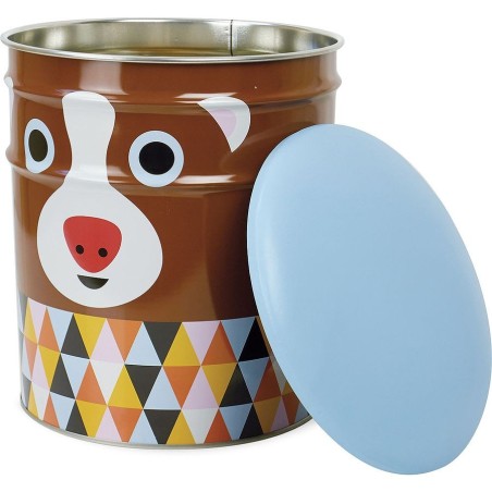 Slimme beer kruk dozen geïllustreerd door Ingela P. Arrhenius. Een opbergdoos en een kruk tegelijk. Metalen box en kunstlederen zitting.
