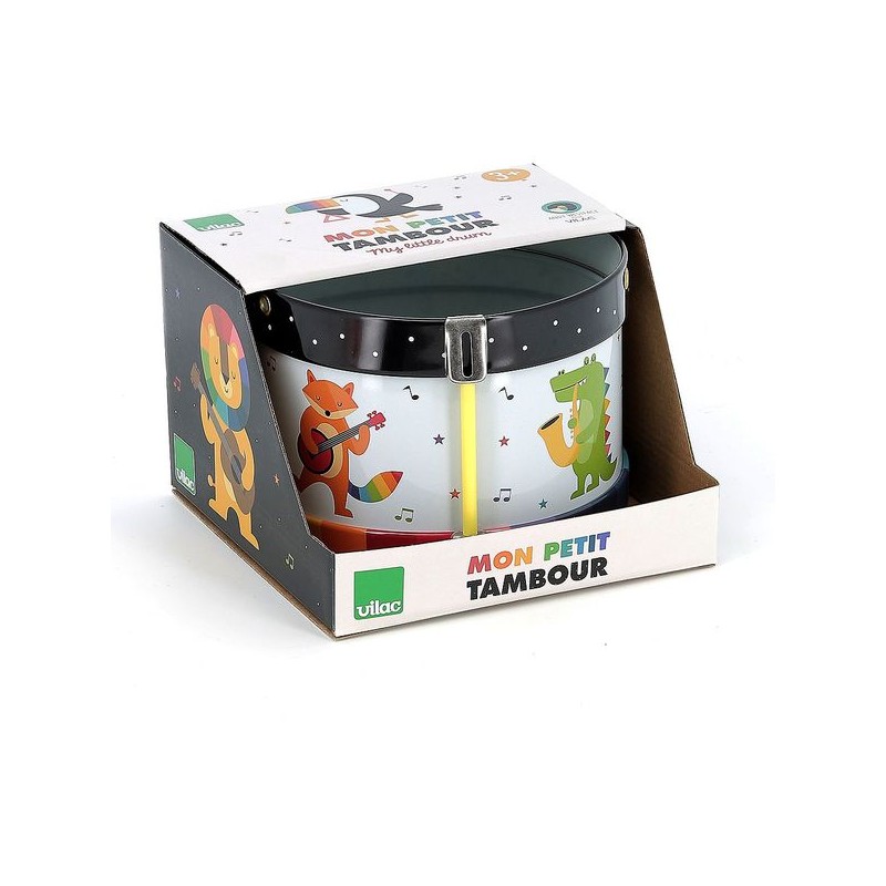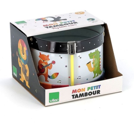 En traaaa taaaa taaaa, tagadaaa taaa taaa! Laten we gaan met de dierenband! Je kleintje zal heel trots met zijn trommel marcheren en een mooie melodie spelen... of misschien een racket, pas op voor de oren! Deze trommel is een geweldige manier om kinderen vanaf 3 jaar kennis te laten maken met het plezier van percussie en ritme, en hen te helpen hun luistervaardigheid en creativiteit te ontwikkelen.