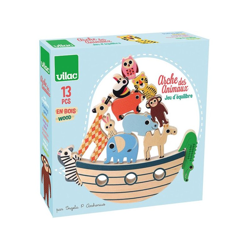 Ken je Noach? Ga met hem aan boord van zijn ark waar je de handigste moet zijn om de dieren zo te plaatsen dat ze allemaal op de boot passen. Maar pas op voor de zee die de romp van het schip kan doen kapseizen! Dieren die ook de fantasie van de kleintjes kunnen vullen en een heel mooie kamerversiering kunnen zijn. Een duurzaam houten speelgoed om mee te spelen als gezin of rustig op je kamer met je knuffels.