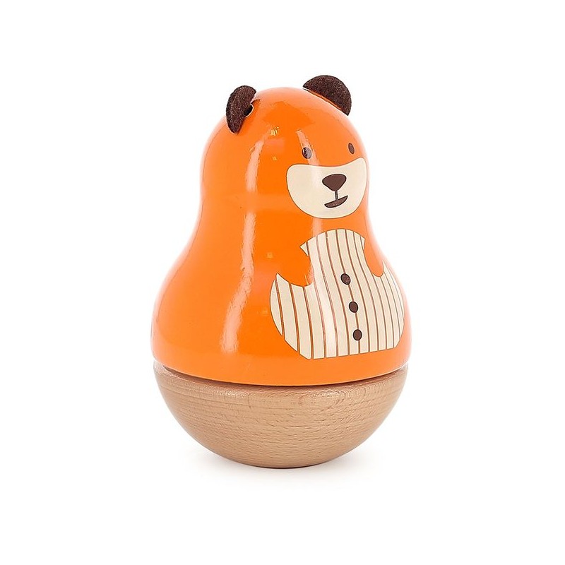 Deze gelakte houten rammelaar, verkrijgbaar als muziekdoos, auto en paraplu, maakt deel uit van een collectie dieren die in ons atelier in de Franse Jura zijn bedacht en gemaakt. Een groep vrienden bestaande uit René de pinguïn, Marcel de beer, Raoul het konijn, Alice de koala, Mariette het poesje en tenslotte Lucien de hond. Voor wie zal jij vallen? Gemaakt in Frankrijk, is dit speelgoed gelakt volgens een uniek proces van onderdompeling in lakbaden die de reputatie van ons atelier in de Jura maakt.