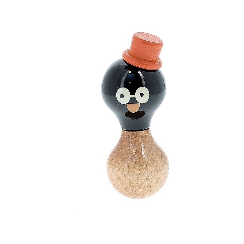 Deze gelakte houten muziekdoos, verkrijgbaar als rammelaar, auto en paraplu, maakt deel uit van een collectie dieren die in ons atelier in de Franse Jura zijn bedacht en gemaakt. Een groep vrienden bestaande uit René de pinguïn, Marcel de beer, Raoul het konijn, Alice de koala, Mariette het poesje en tenslotte Lucien de hond. Voor wie zal jij vallen? Gemaakt in Frankrijk, is dit speelgoed gelakt volgens een uniek procédé van onderdompeling in lakbaden dat de reputatie van ons atelier in de Jura maakt. Muziek : Fais dodo Colas mon p'tit frère.