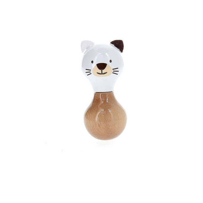 Deze gelakte houten muziekdoos, verkrijgbaar als rammelaar, auto en paraplu, maakt deel uit van een collectie dieren die in ons atelier in de Franse Jura zijn bedacht en gemaakt. Een groep vrienden bestaande uit René de pinguïn, Marcel de beer, Raoul het konijn, Alice de koala, Mariette het poesje en tenslotte Lucien de hond. Voor wie zal jij vallen? Gemaakt in Frankrijk, is dit speelgoed gelakt volgens een uniek procédé van onderdompeling in lakbaden dat de reputatie van ons atelier in de Jura maakt. Muziek : Fais dodo Colas mon p'tit frère.