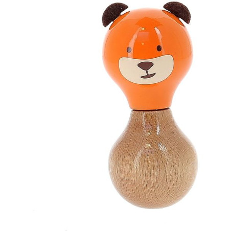 Deze gelakte houten muziekdoos, verkrijgbaar als rammelaar, auto en paraplu, maakt deel uit van een collectie dieren die in ons atelier in de Franse Jura zijn bedacht en gemaakt. Een groep vrienden bestaande uit René de pinguïn, Marcel de beer, Raoul het konijn, Alice de koala, Mariette het poesje en tenslotte Lucien de hond. Voor wie zal jij vallen? Gemaakt in Frankrijk, is dit speelgoed gelakt volgens een uniek procédé van onderdompeling in lakbaden dat de reputatie van ons atelier in de Jura maakt. Muziek : Fais dodo Colas mon p'tit frère.