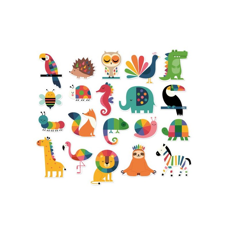Dompel jezelf onder in de betoverende regenboogwereld van Andy Westface! Neem deze schattige houten dierenmagneten en voeg een vleugje magie toe aan elk magnetisch oppervlak in je huis. Stimuleer de verbeelding van je kind door ze uit te nodigen boeiende verhalen te maken met deze 20 ondeugende dieren: de olifant, de vos, de toekan en vele andere metgezellen. De perfecte gelegenheid om de dierenwereld te ontdekken en te verkennen terwijl je je creativiteit ontwikkelt!