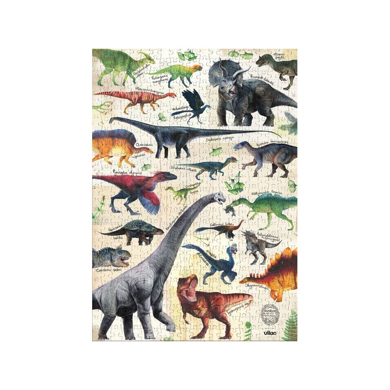 Deze puzzel van 500 stukjes is een echt prehistorisch fresco, met indrukwekkende dinosaurussen getekend door ons creatieve team in de Jura in samenwerking met paleontoloog Ronan Allain. Hij is een vooraanstaand specialist van het MNHN (Frans Nationaal Natuurhistorisch Museum) en heeft onlangs in de Provence de Pyroraptor Olympus ontdekt, een vuurvreter van Olympus. Deze grote puzzel gaat vergezeld van verklarende bladen waarin je unieke details en anekdotes kunt ontdekken over de oorsprong van deze fascinerende wezens uit het Krijt: de oorsprong van hun namen, waarom sommigen veren hadden en anderen hoorns, welke kleur hun huid had, waar ze hun staart of lange nek voor gebruikten en nog veel meer ontdekkingen. Laat de kinderen ontdekken en spelen met deze ongelooflijke wezens die miljoenen jaren geleden op onze planeet rondzwierven. Een originele manier om te leren en plezier te hebben!