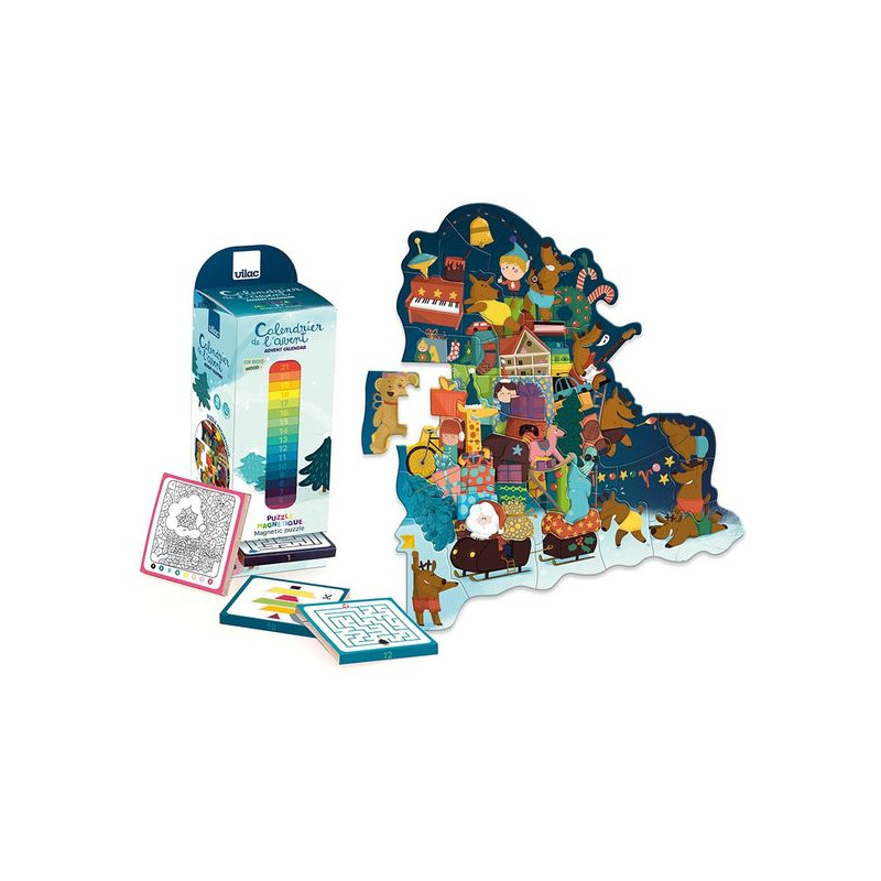 Onze adventskalender bestaat uit 24 zakjes en biedt een unieke manier om op een leuke manier vooruit te kijken naar Kerstmis. Elke dag ontdekt je kind twee houten magneten in de zakjes, die geleidelijk helpen om een mooie kerstpuzzel in elkaar te zetten. De kerstactiviteiten op elke zak nodigen je kind uit om deel te nemen aan feestelijke en creatieve activiteiten. Door de houten magneten te hanteren en de puzzel dag na dag in elkaar te zetten, ontwikkelt je kind fijne motorische vaardigheden en oog-handcoördinatie. Door de houten magneten te hanteren en de puzzel dag voor dag in elkaar te zetten, ontwikkelt je kind fijne motorische vaardigheden en oog-handcoördinatie. Deze speelse kalender is niet alleen een leuke manier om af te tellen naar Kerstmis, het is ook een geweldig leermiddel dat kinderen stimuleert om vooruit te plannen, te begrijpen hoe de stukjes in elkaar passen en aan hun geduld te werken.Deze adventskalender is de perfecte gelegenheid om samen gezinsmomenten te creëren. Elke dag kan je kind een nieuwe fase in zijn of haar puzzel ontdekken, terwijl hij of zij samen met jou deelneemt aan de voorgestelde activiteiten. Dit dagelijkse moment wordt een ritueel dat communicatie, medeplichtigheid en delen aanmoedigt.
