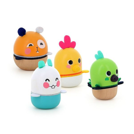 Een houten educatief speelgoed geschikt voor de allerkleinsten. Onze houten Piou-Piou dierenrammelaars zijn speciaal ontworpen voor kinderen vanaf 1 jaar. Ze zijn gemaakt van natuurlijke materialen, zijn zowel veilig als niet-giftig en bieden een milieuvriendelijk alternatief voor plastic speelgoed. Het gebruikte hout voelt zacht aan, stevig en past perfect bij de handjes van je kleintje. Deze kleine metgezellen zijn bestand tegen dagelijkse slijtage en bevorderen de ontwikkeling van fijne motoriek en hand-oogcoördinatie. Door hun formaat en eenvoudige vorm kan uw kind ze gemakkelijk hanteren. Zintuiglijke stimulatie en auditief ontwaken Onze houten Piou-Piou-rammelaars stimuleren het zintuiglijke ontwaken van uw kind dankzij hun heldere kleuren en hun vermogen om geluid te produceren wanneer ze worden geschud. Bij elk dier zit een belletje, wat leuk is en de aandacht van je kleintje trekt. Deze geluiden dragen bij aan zijn auditieve ontwaken en laten hem bovendien kennismaken met de concepten van oorzaak en gevolg. Door met deze kleurrijke dieren te spelen, ontwikkelt uw kind ook zijn verbeeldingskracht door verhalen te verzinnen, terwijl hij geluiden associeert met zijn gebaren, wat zijn speelervaring verrijkt. Een duurzaam en interactief speelgoed. Gemaakt van duurzaam hout en beschilderd met niet-giftige producten, onze houten Piou-Piou zijn milieuvriendelijk en veilig voor de gezondheid van uw kind. Hun robuustheid garandeert een lange levensduur, waardoor het duurzaam speelgoed is dat van generatie op generatie kan worden doorgegeven. Hun speelse geluiden voegen een interactieve dimensie toe. Dit speelgoed is niet alleen leuk en leerzaam, maar door het kleurrijke en aantrekkelijke ontwerp zijn het ook charmante decoratieve items voor de kamer van uw kind.