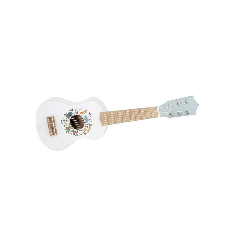 Een delicaat universum. Dit muzikale speelgoed is prachtig geïllustreerd door kunstenaar Sarah Betz. Ze sloot zich in 2023 aan bij het Vilac-avontuur en biedt een teder en poëtisch universum. Ze is een getalenteerde illustrator en heeft deze kinderlijke ziel nooit dicht bij de natuur gelaten, die haar vandaag de dag nog steeds inspireert. In 2013 richtte ze haar illustratiestudio Cubeely op in de pittoreske wijk Montmartre. Een speelgoedinstrument om over muziek te leren. Onze houten gitaar is gemaakt van massief hout en heeft een formaat dat geschikt is voor kinderen vanaf 3 jaar. Hij wordt geleverd met vervangende nylon snaren. Met deze speelgoedgitaar kan uw kind de basismuzieknoten begrijpen en zijn gevoel voor ritme ontwikkelen. Zonder elektronica zullen de noten die door onze gitaar worden geproduceerd uw oren verrukken en uw kleintje kennis laten maken met de geneugten van muziek. Veel voordelen voor deze houten gitaarOp 3-jarige leeftijd bevindt uw kind zich in een cruciale fase van zijn ontwikkeling en muzikale activiteiten hebben een aanzienlijke impact op zijn cognitieve, emotionele en fysieke groei. Door onze gitaar te gebruiken, ontwikkelt uw kind zijn fijne motoriek: door aan de snaren te tokkelen, verbetert hij zijn hand-oogcoördinatie en versterkt hij zijn vingerspieren. Deze manipulatieve activiteit helpt ook bij het ontwikkelen van behendigheid en precisie, essentiële vaardigheden voor toekomstige taken zoals schrijven. Bovendien helpt het spelen van noten en het maken van geluiden uw kind om oorzaak en gevolg te leren kennen. Een decoratieve gitaar. Deze mooie houten gitaar zal een zeer trendy decoratief accessoire zijn in je interieur. Dankzij de glanzende lak die het licht opvangt, vindt hij zijn plaats in uw woonkamer of in de slaapkamer van uw kind.