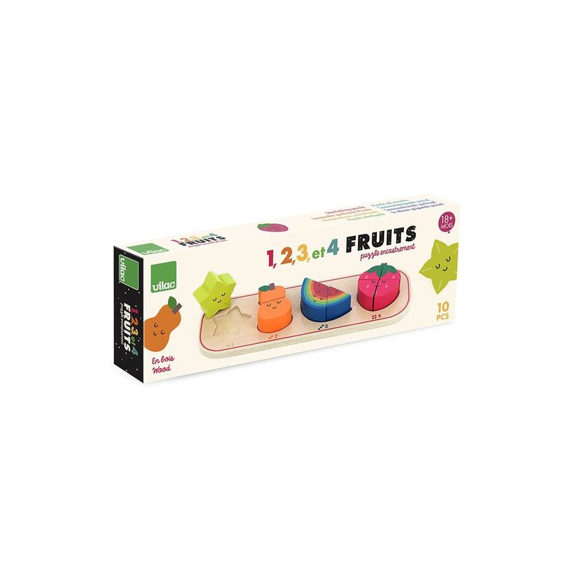 Een houten passpel om te beginnen met spelen met cijfers. Kinderen vanaf 18 maanden zullen veel plezier beleven aan dit eerste educatieve spel. De vruchten hebben verschillende vormen en kleuren en stellen je in staat associaties en stapeling te testen, waardoor kleintjes kennismaken met getallen en ordes van grootte. Alle elementen worden op een houten steun geplaatst. Om de opslag te vergemakkelijken, is de steun op maat gesneden volgens de vorm van het fruit. Onze ontwerpers hebben onder elke locatie het nummer toegevoegd dat overeenkomt met het aantal stuks, evenals een visuele referentie. Dit houten spel voor vroeg leren biedt een dynamische en leuke leerruimte, waar kinderen met plezier de wereld van cijfers (en fruit) verkennen. Veel leren. Wanneer uw kind met ons vroege leerspel speelt, maakt hij gebruik van vele vaardigheden: concentratie, motoriek, geduld, hand-oogcoördinatie. Door onvermoeibaar te doen, ongedaan te maken en opnieuw te doen, kan uw kleintje groeien terwijl hij plezier heeft. Met dit speelgoed kan hij zijn handmatige en visuele coördinatie ontwikkelen, observeren, leren over nummering van 1 tot 4, sorteren op kleur en fruit, concepten die hij op natuurlijke wijze zal verwerven. Samen met zijn ouders ontdekt het kind alle rijkdommen die dit houten speelgoed te bieden heeft. Zo ontworpen dat het kind ook alleen kan experimenteren, voldoet dit educatieve speelgoed ook aan de Montessori-pedagogie. Een kleurrijk universum. Dit vroege leerspel is mooi ingericht met een fruitthema, door kunstenaar Andy Westface. Hij werkt sinds 2021 met ons samen en biedt een kleurrijk en poëtisch universum. Zijn creaties, een onafhankelijke illustrator, helpen kinderen groeien en brengen vreugde in hun kamers.