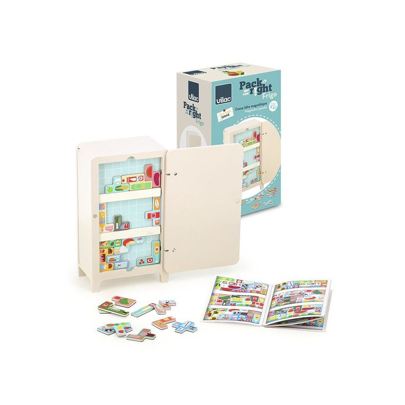 Ontwikkeling van logica en denken. Ons houten logicaspel Pack it Right, geïllustreerd door Ingela P. Arrhenius, biedt uw kind een leuke en leerzame ervaring. Dit spel is geschikt voor kinderen vanaf 5 jaar en houdt in dat je magnetische stukken, die eten voorstellen, in een houten koelkast moet leggen en ze moet aanpassen aan de verschillende beschikbare ruimtes. Met dit originele concept ontwikkelt uw kind zijn of haar logisch denkvermogen en observatievermogen terwijl het probeert alle stukjes in de koelkast te plaatsen. Doordat kinderen moeten nadenken over hoe ze hun eten het beste kunnen organiseren, wordt hun probleemoplossend vermogen op een leuke manier gestimuleerd. Een logisch spel om de fijne motoriek en coördinatie te stimuleren. Dankzij de magnetische onderdelen is dit spel ook ideaal om de fijne motoriek van uw kind te versterken. Door eten in de houten koelkast te leggen, leert hij zijn gebaren aan te passen en zijn bewegingen precies te coördineren. Dankzij de twee uitneembare zijstangen, die tevens als planken dienen, kunt u de hoogte van de koelkast traploos instellen, wat zorgt voor extra gebruiksgemak. Uw kind oefent met het nauwkeurig gebruiken van zijn of haar handen en ontwikkelt tegelijkertijd zijn of haar behendigheid, een essentiële vaardigheid voor andere leerprocessen, zoals schrijven. Een evoluerend en aanpasbaar spel voor het hele gezin. Ons houten spel "Pack It Right" wordt geleverd met een boekje met 7 oplossingen en is schaalbaar en aanpasbaar aan de mogelijkheden van uw kind. Door gebruik te maken van de verschillende aangeboden oplossingen, kunt u het moeilijkheidsniveau aanpassen, waardoor uw kind op zijn eigen tempo vooruitgang kan boeken. Dit spel is ook een leuke manier om samen met het hele gezin gezellige momenten te beleven, waarbij elk gezinslid kan bijdragen aan het organiseren van het eten in de koelkast. Een educatief, duurzaam en leuk speelgoed dat urenlang speelplezier biedt en tegelijkertijd de creativiteit en het denkvermogen van het hele gezin stimuleert. Een retro-universum. Dit originele houten logicaspel is versierd door de kunstenares Ingela P. Arrhenius. Ze vertelt ons verhaal al jaren en laat ons kennismaken met een retro- en designuniversum. Ze is een getalenteerde Zweedse illustrator. Kunst en design hebben altijd een grote rol in haar leven gespeeld. Ze werkt internationaal in de reclame-, design- en uitgeverswereld.