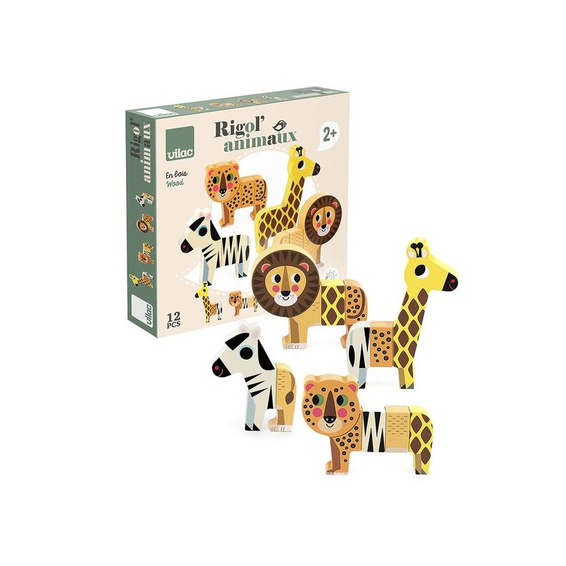 Vier prachtige savannedieren van gemagnetiseerd hout die kunnen worden samengevoegd of gemengd om grappige dieren te creëren. Illustraties van kunstenares Ingela P. Arrhenius.