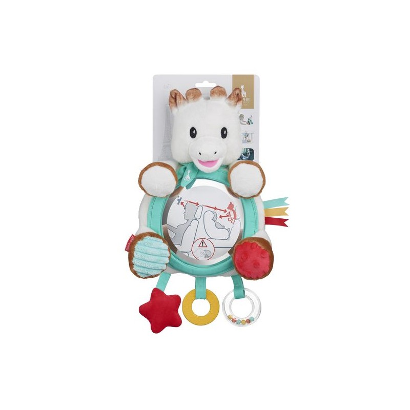 De multi-activiteitenspiegel is ideaal om baby te vermaken tijdens de verplaatstingen ! Dankzij de 2 ringen is hij gemakkelijk te bevestigen aan meerdere supports (kinderwagen, bed, box, auto...). Hij kan ook op de vloer worden geplaatst aan de hand van de basis op de rug. Leuk, als baby de ster aanraakt start er een muziekje. Door het zien van zijn spiegelbeeld raakt baby ook vertrouwd met zijn beeld. Praktisch, dankzij de spiegel kunnen ouders ook altijd de baby in de gaten houden tijdens autoritten. Verschillende activiteiten om baby's zintuigen te stimuleren: een bel verborgen in de rechter poot, krisppapier in de linker poot, een muzikale chip in de ster, een ring met een mooi belgeluid, een zachte bijtring met textuur om op te kauwen, zachte en gevarieerde materialen (corduroy, micro fluweel, micro fleece...). Oppervlakte wasbaar.