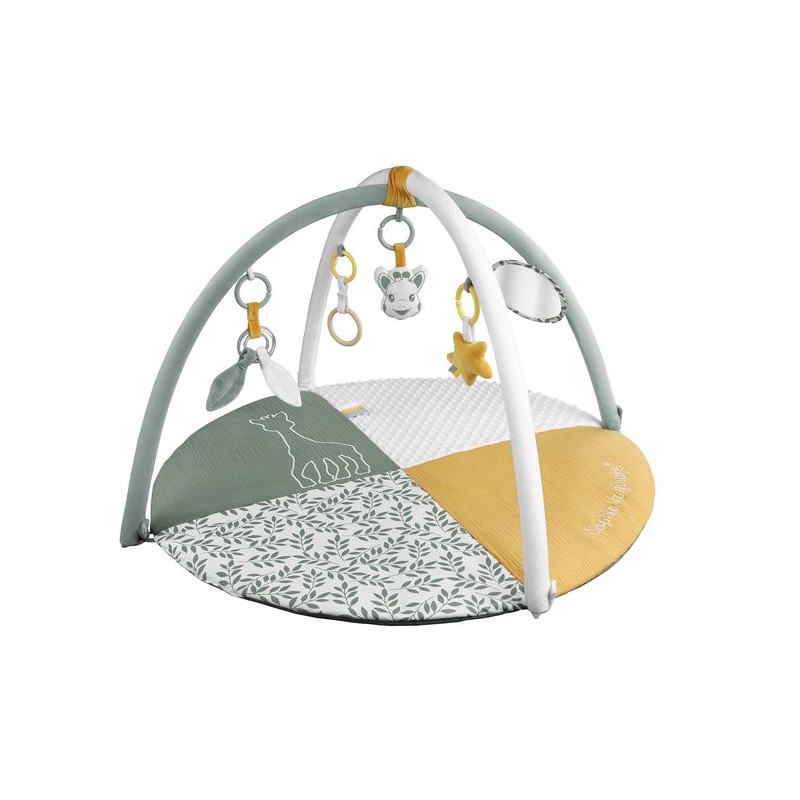- Fotokant: Verwijder de bogen, draai de mat om en ontdek een mooi fotokleed ! Leg de baby op de mat, omcirkel zijn leeftijd met de houten ring en plaats het hoofdje van Sophie de giraf onder 'week' of 'maand'! Fotografeer de baby en leg zijn ontwikkeling week na week en maand na maand vast als mooie herinneringen van elk moment te hebben !