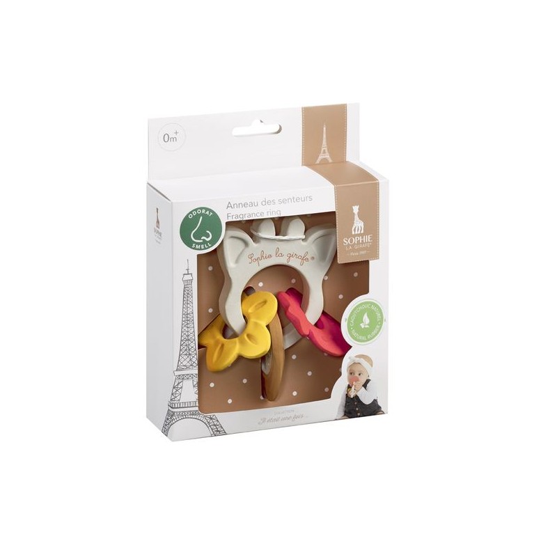 Baby ontdekt en prikkelt zijn reukzin dankzij de geurring, een echt zintuiglijk plezier voor baby ! Gemakkelijk vast te pakken en te hanteren, de geurring bestaat uit 3 medaillons met subtiele zoete geuren: aardbei, vanille, kokosnoot. De subtiele en lichte geuren prikkelen de reukzin van baby vanaf de eerste maanden en wekken zijn nieuwsgierigheid.
