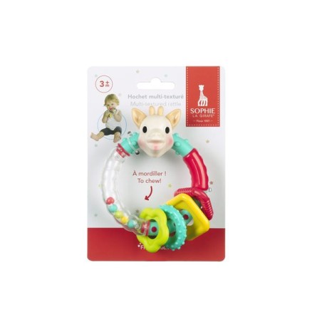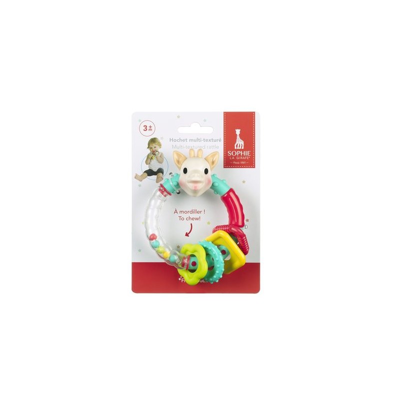 Om te ontdekken : levendige kleuren die de aandacht van baby trekken, gedeeltes met verschillende texturen om op te bijten, 4 vormpjes om heen en weer te schuiven, gekleurde balletjes om te schudden en te luisteren hoe alles klinkt.
