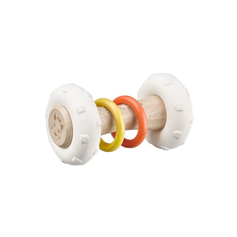 Dit zachte en resistente hout, waaraan geen chemische behandeling is toegevoegd, gaat perfect samen met ons natuurrubber om de baby leuke speelmomenten te laten beleven. Een rammelaar die 100% natuurlijk rubber en hévéahout mengt en de zintuigen van de baby prikkelt: Kleine balletjes in het handvat en 2 houten ringen die je kan horen botsen als ze elkaar raken. Twee verschillende materialen om de tastzin te ontwikkelen. Twee gekleurde ringen om het gezichtsvermogen te ontwikkelen. Getextureerde onderdelen van natuurlijk rubber om op te kauwen. De twee rubberen delen zijn afneembaar voor nog meer speelbaarheid. Gemakkelijk vast te grijpen door de kleine handjes van de baby.