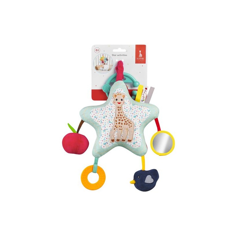 Een leuke activiteiten ster met meer dan 6 activiteiten om te spelen en de zintuigen van baby te stimuleren. Te ontdekken: levendige en contrasterende kleuren, knisper geluidjes, verschillende texturen, een bijtring, bellen, en een spiegel. Handig: de haak zorgt ervoor dat de activiteiten ster kan worden vastgemaakt aan meerdere voorwerpen zoals de wandelwagen, zijde van babybed, handvat van een auto,.... Handwas.